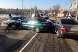 В Харькове фура с щебнем раздавила автомобиль службы такси и повредила еще два авто
